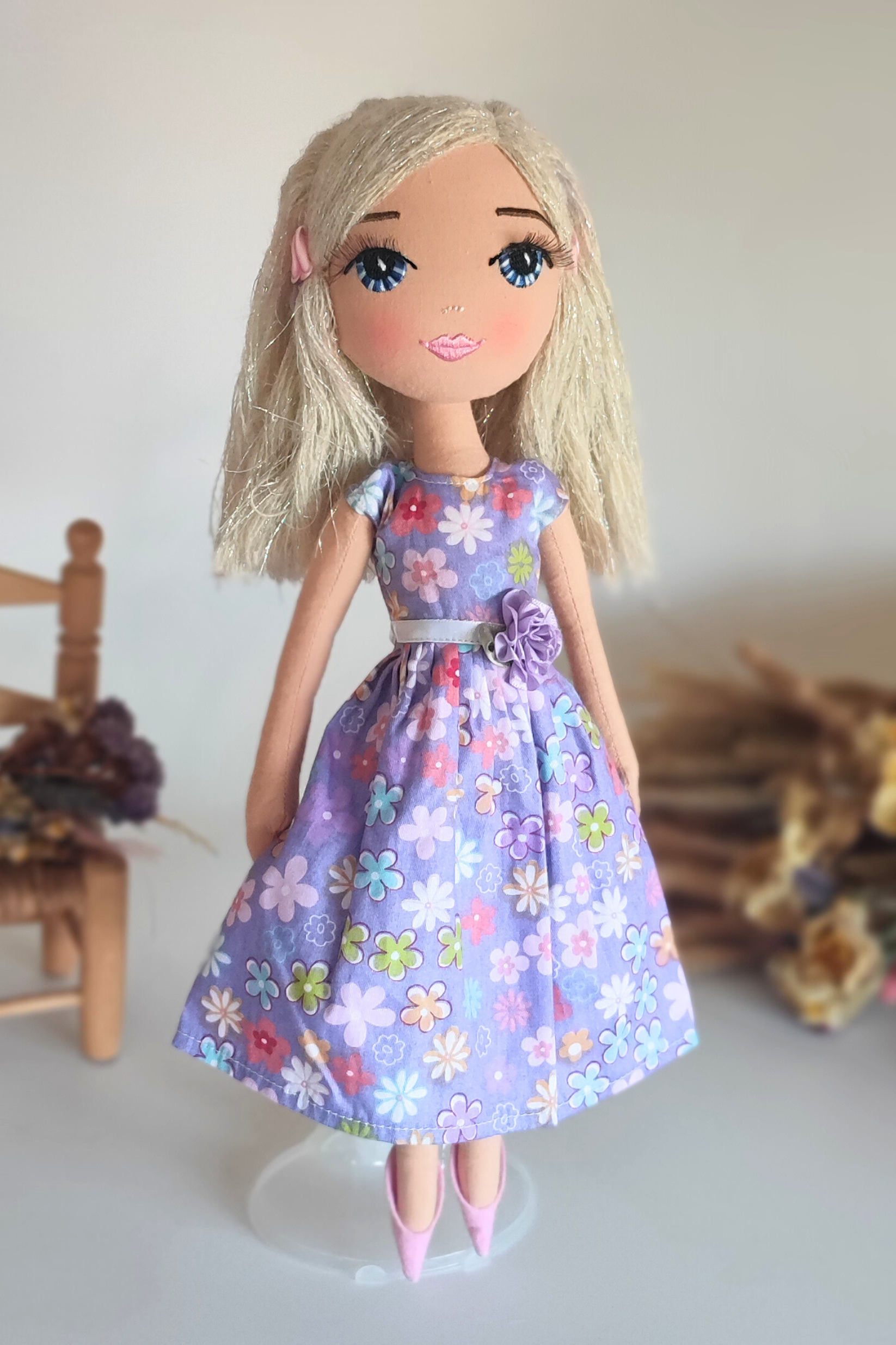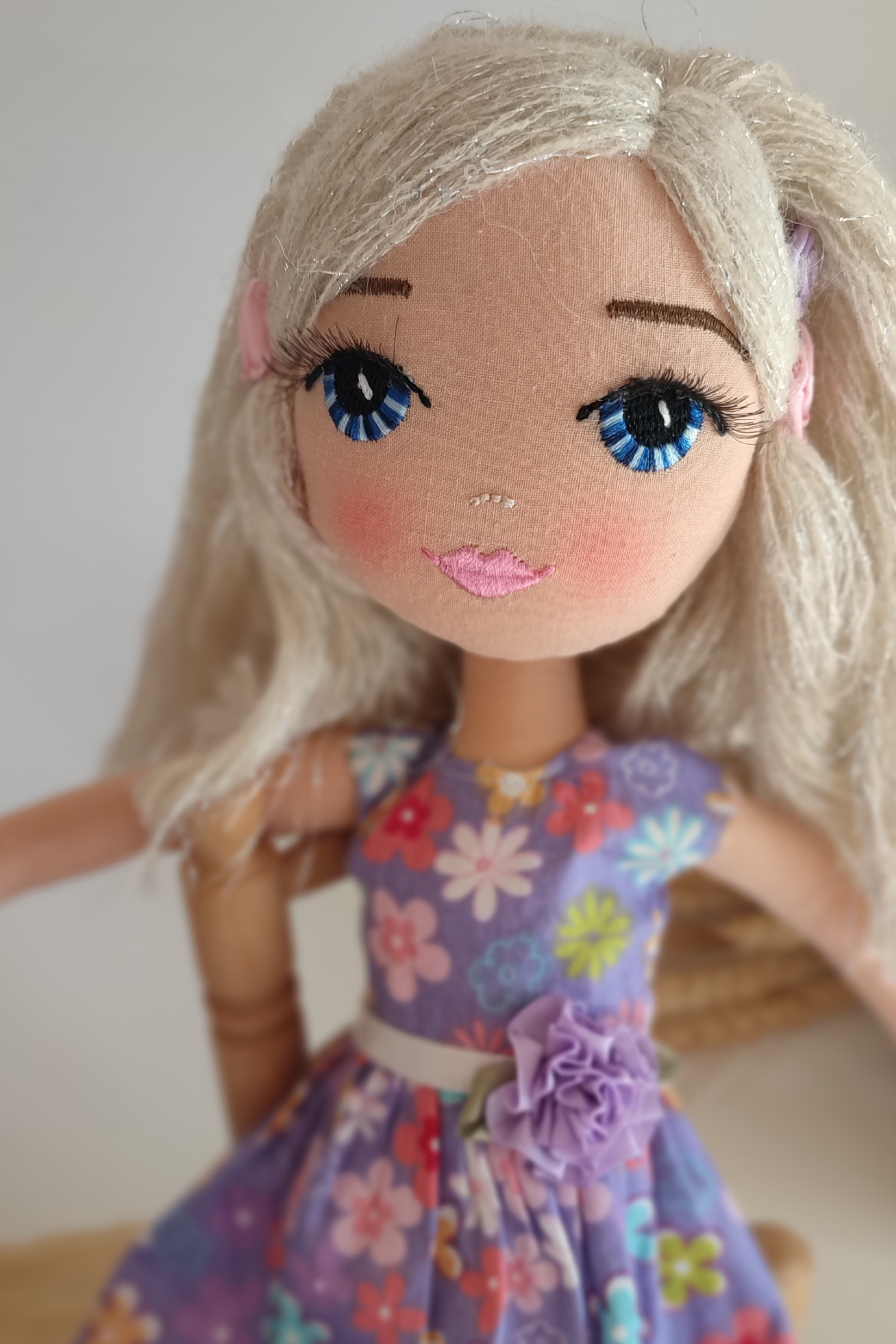 El vestido de Eira está de un precioso color morado, y está adornado con vibrantes flores de colores que evocan la esencia de la primavera. Pero eso no es todo, un detalle floral en la cintura le añade un toque de elegancia y sofisticación que la hace destacar entre las muñecas.
